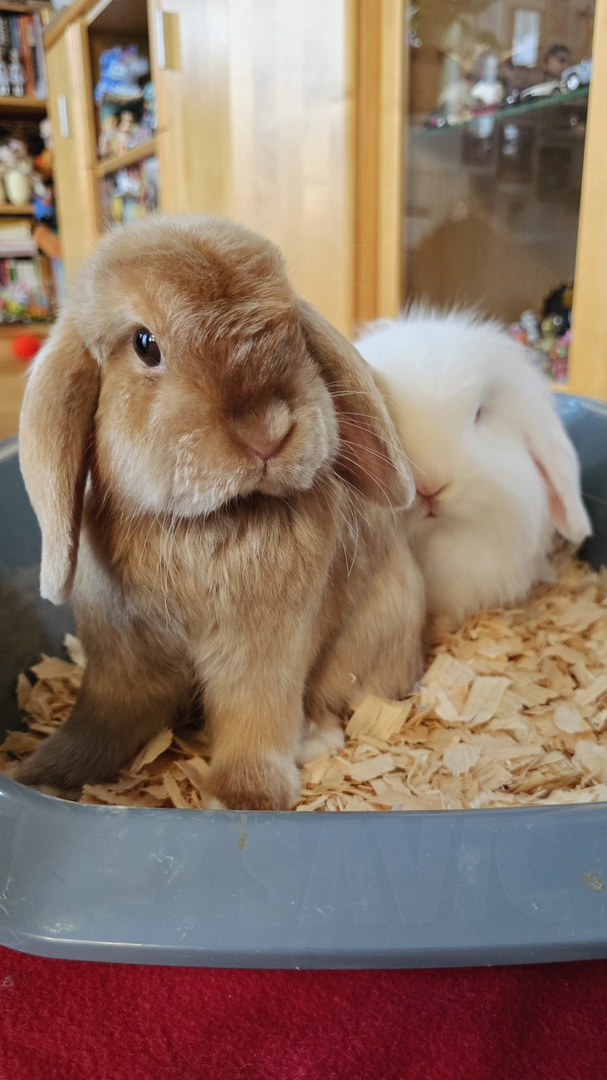Wir haben eine bezaubernde Tochter und einen neugierigen Sohn. Und die Zwergkaninchen Lilo & Stitch.